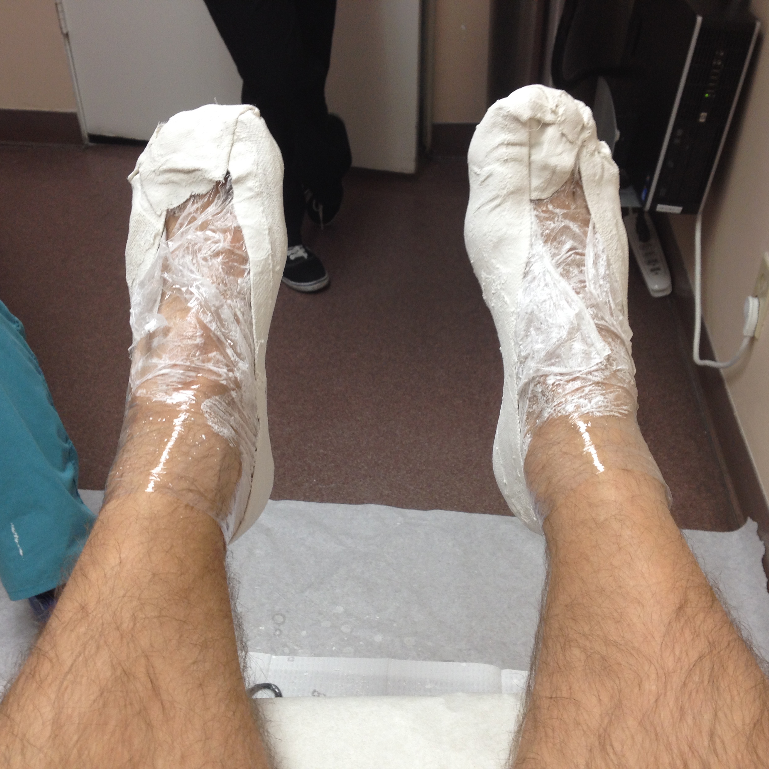 The podiatrist decided we needed to get serious (as if ramming Excalibur into my foot wasn’t serious enough)… time for the custom inserts.