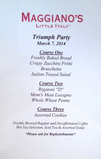 Last night the runners and support staff for Team To End AIDS (T2) met at Maggiano’s for our carbo-load dinner… our “Triumph party.”
