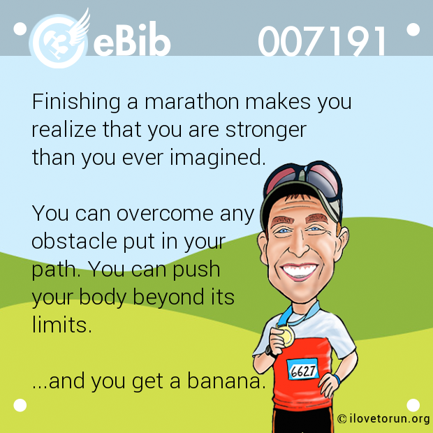 Yup, my caricature was courtesy of the gang at ilovetorun.org. They had introduced the glory that is the “eBib.” Think of it as an ecard specially designed for runners. It was simple: