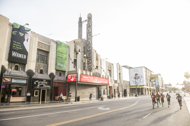 Starting at Dodger Stadium, the course travels through Chinatown and parts of downtown before heading up into Hollywood and past the Chinese Theater. Then you head down Sunset Blvd and into West Hollywood before a jaunt along Rodeo Drive, Beverly Hills and a turn toward the ocean.