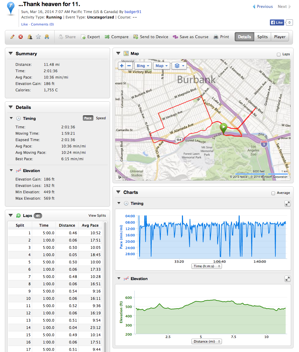 Well, for those of you wondering (and if you were truly wondering, thank you, but you really should consider a different hobby), today was indeed an 18-mile jaunt around Burbank and in Griffith Park.