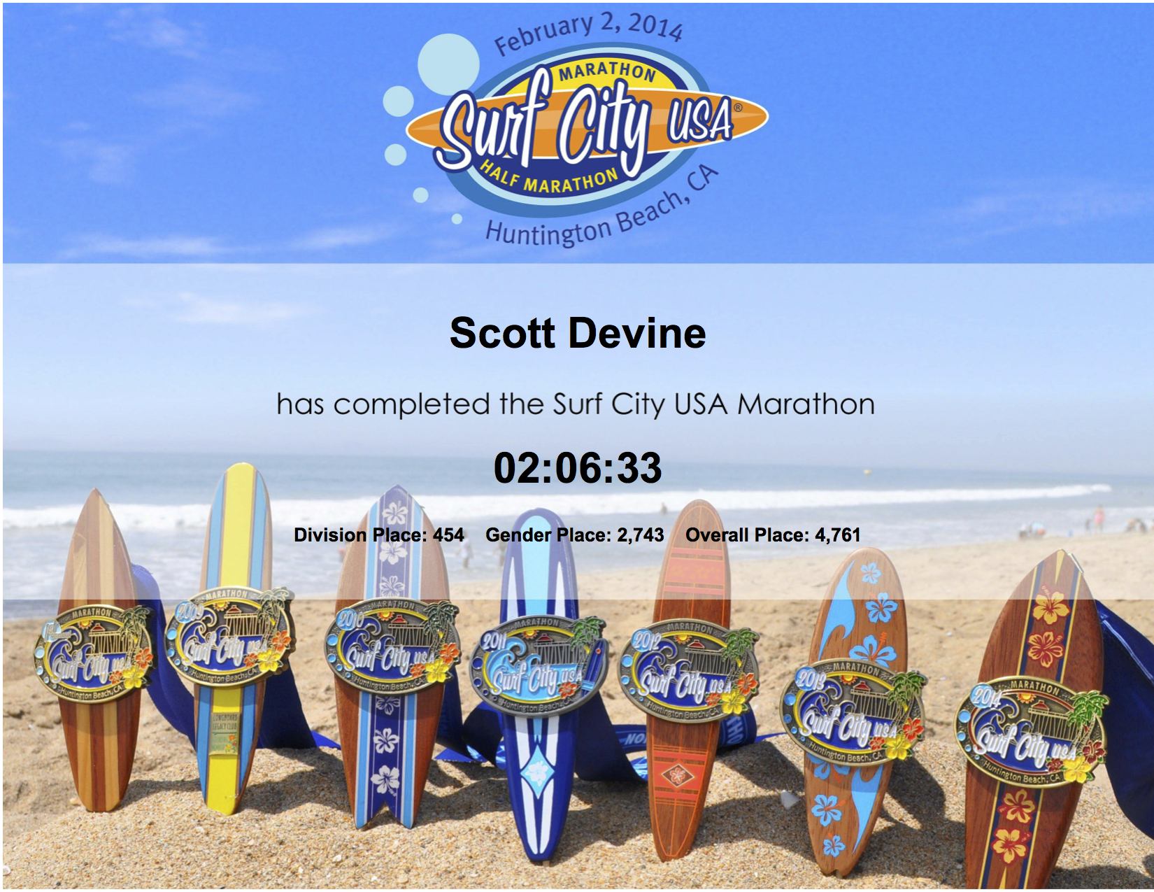 This Sunday I lace I up my shoes to run the Surf City Half Marathon for the just second time. I’ll be joined by almost 20,000 other runners as we pound the pavement along Pacific Coast Highway in Huntington Beach. It truly is a beautiful vista to behold and should be a great time. Of course, I’m a bit biased as Surf City holds a special place in my heart and it has nothing to do with the surfboard finisher’s medals (which are really really cool).